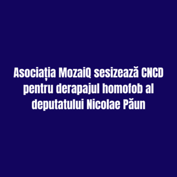 Asociația MozaiQ a depus o plângere la CNCD împotriva deputatului Nicolae Păun pentru derapaj homofob